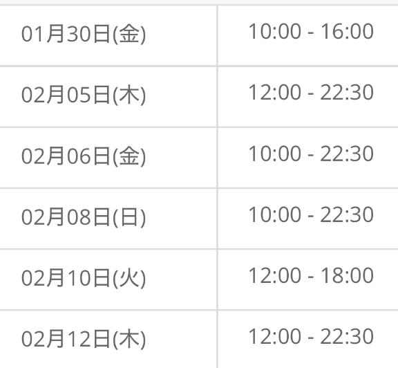2月前半までのシフトup♡